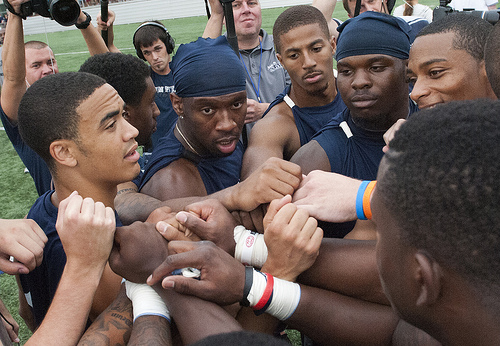 The team had been working all year toward this one goal. Countless hours of practice, drills, weight training, and conditioning had been undertaken in an effort to be the best. Tonight they had a chance to make this happen. The championship game was only minutes away. The players huddled together. The team’s captain and Heisman